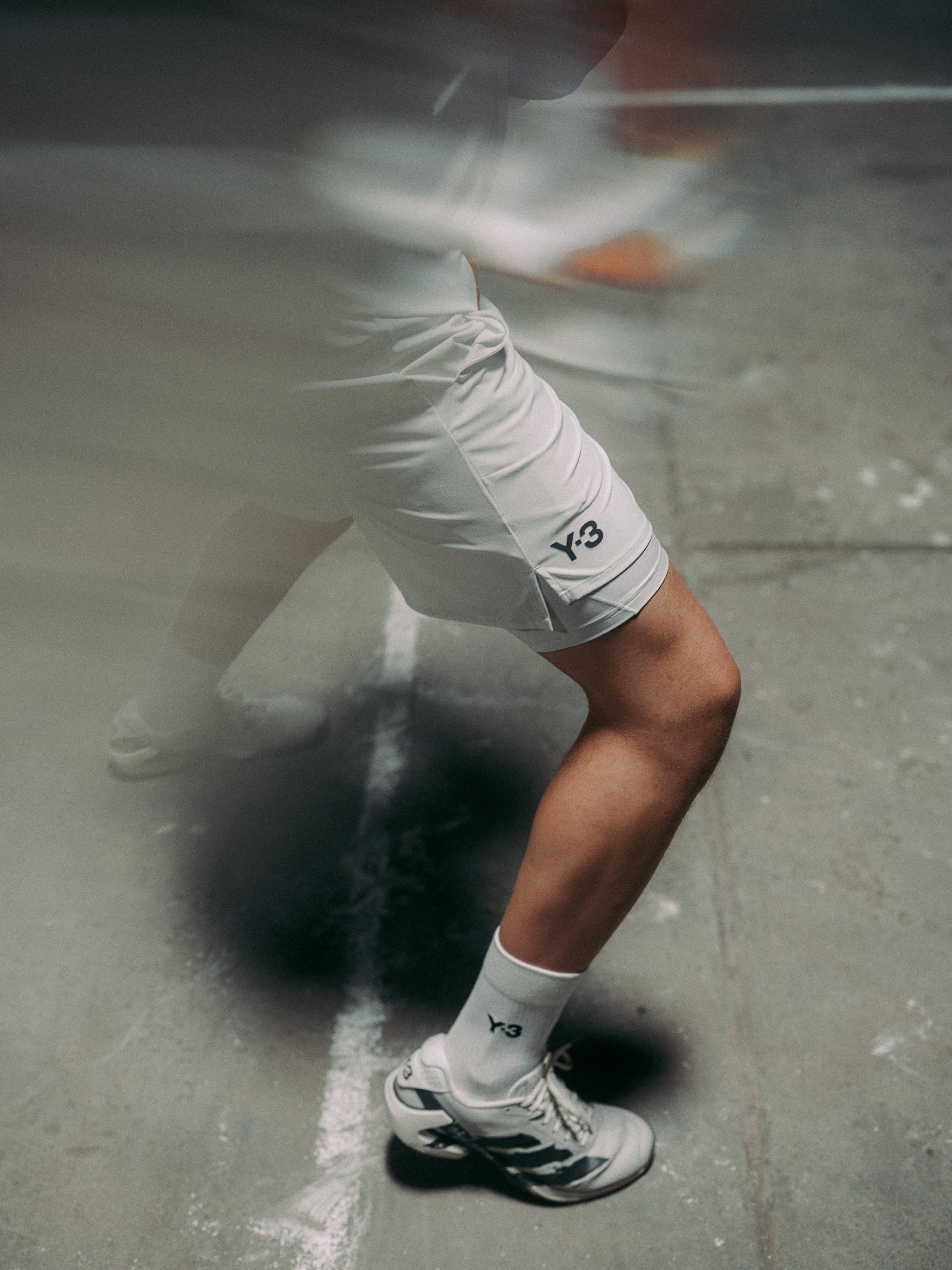The match is told through fragments: feet tracing white lines, fabric shifting under hard light, silhouettes locked in stillness before impact. The camera follows an invisible rally, cutting between breath, footwork, and texture. Y-3 appears through cropped, abstract compositions — worn, not displayed. Winning is irrelevant. What matters is presence: on the court, in the outfit, in the moment.